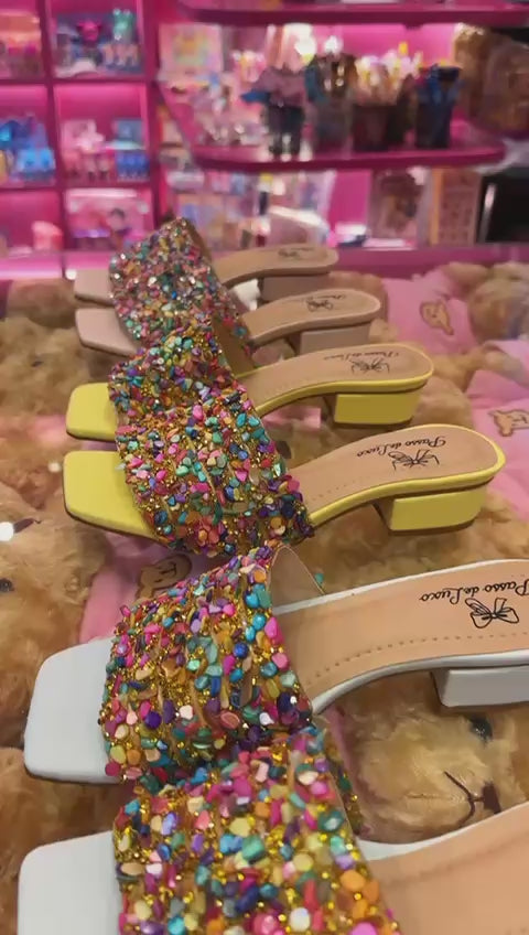 O Tamanco Crystal Candy é a escolha oficial das nossas pequenas e grandes fashionistas. Unindo a modernidade do bico folha com a alegria de um arco-íris de pedrarias, ele foi desenhado para quem quer brilhar com elegância, sem abrir mão da liberdade de movimento.